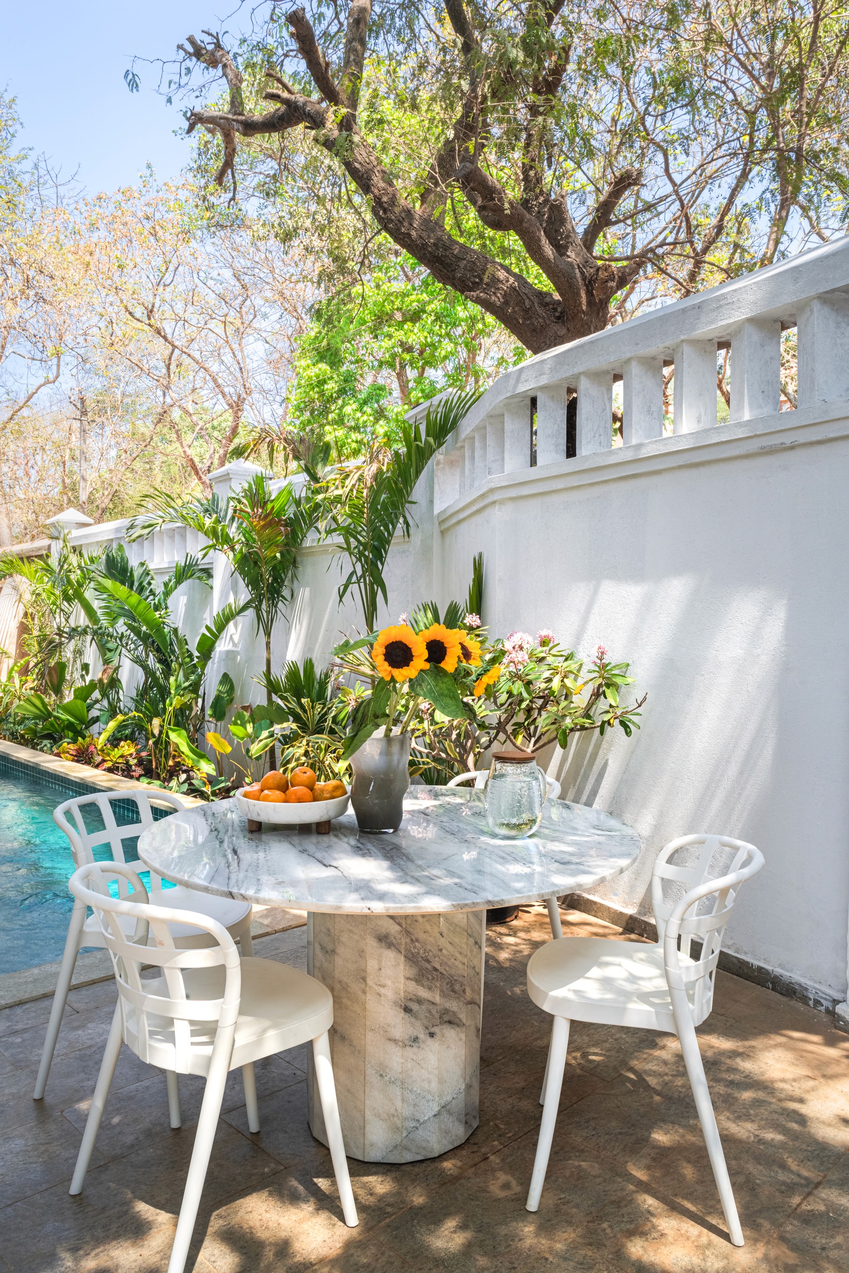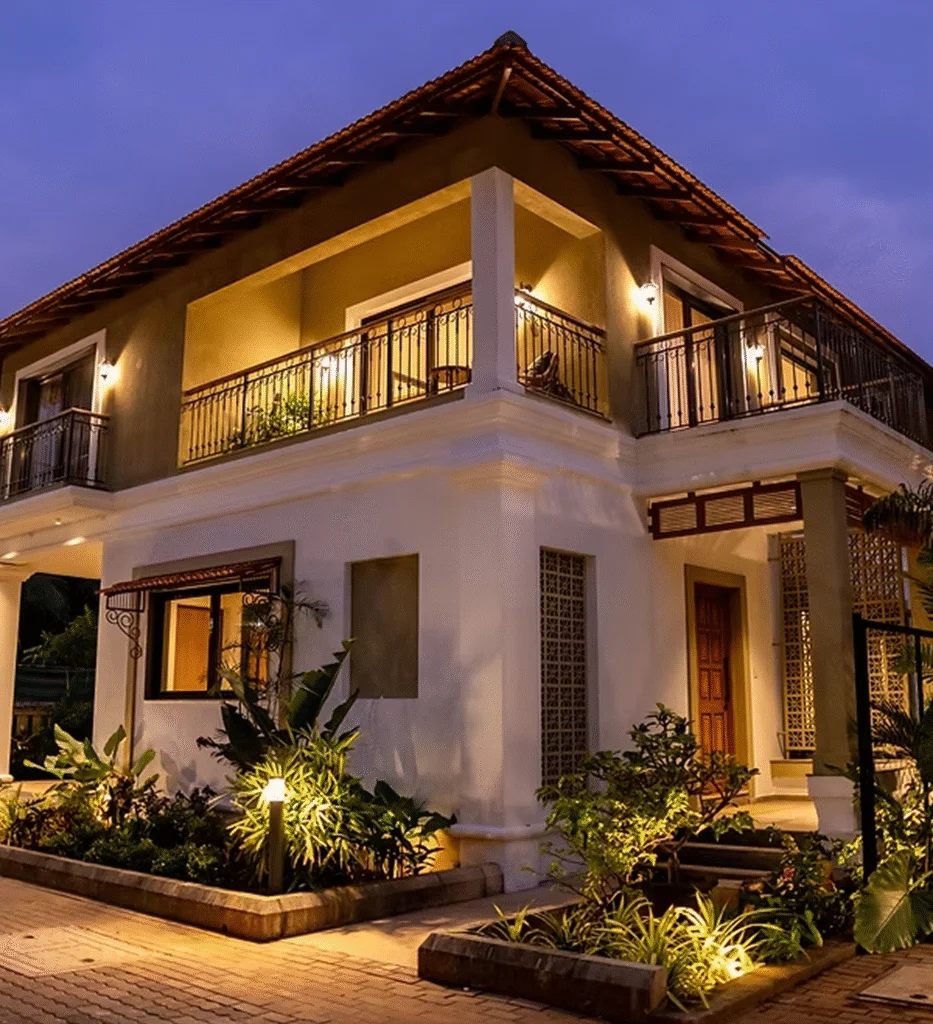 Located in Siolim, Porto Sentido is a 4BHK luxury villa inspired by tropical modernist architecture. Surrounded by lush greenery and tranquil backwaters, it features a serene courtyard, shaded verandahs, artisanal interiors, and a design that encourages natural flow and stillness. A soulful, secluded retreat just minutes from Goa’s most vibrant locales.